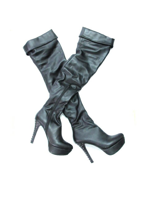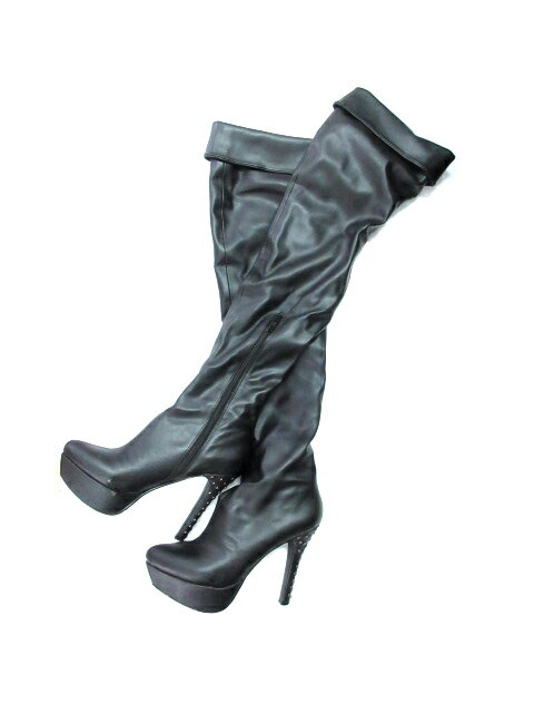 エスペランサ ESPERANZA ブーツ ニーハイ フェイクレザー ヒール スタッズ 装飾 黒 ブラック M 約23cm 靴 レディース 【中古】【ベクトル 古着】 181207 ブランド古着ベクトルプレミアム店